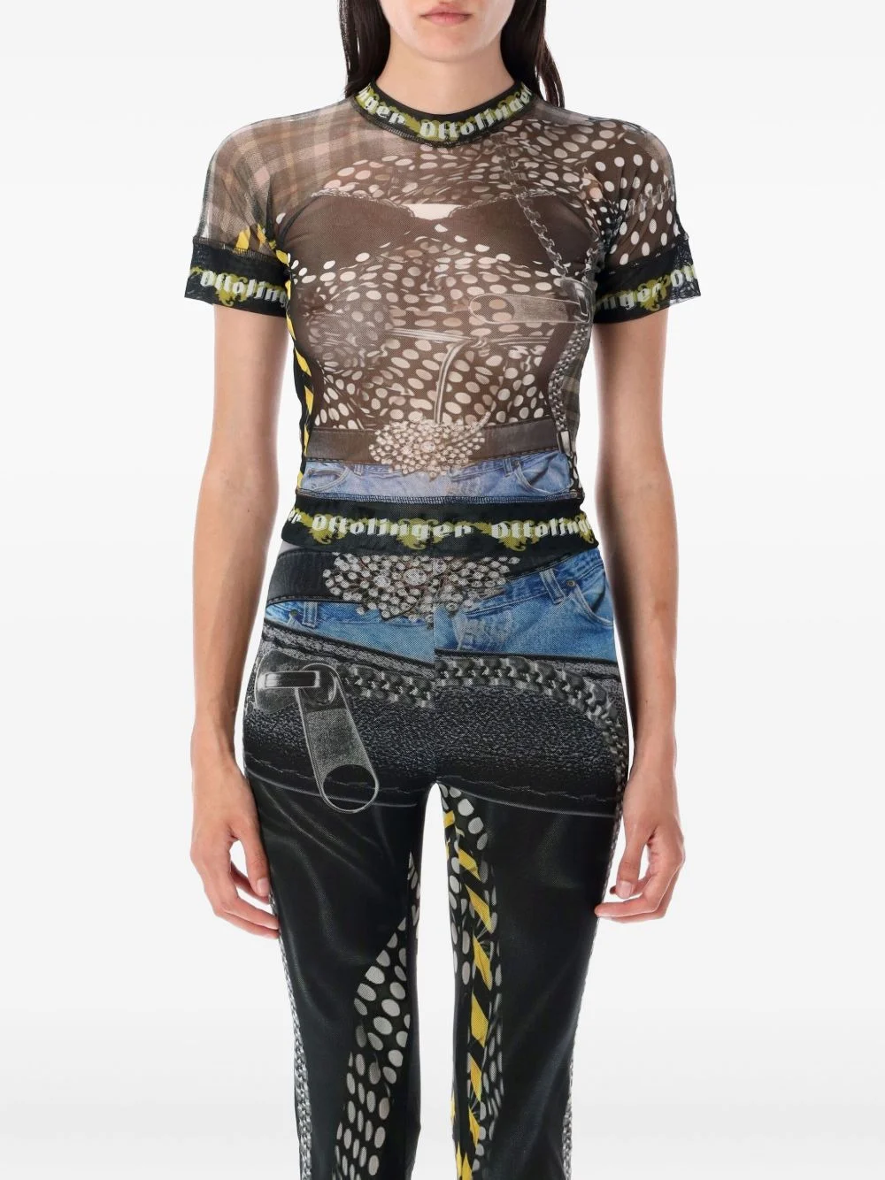 mesh zip-print T-shirt Highlights - Black - Mesh fabric - Zip graphic print - Short sleeves Imported Composition Recycled Polyester 90%, Elastane 10% Washing instructions Read Manufacturer Guidelines