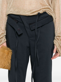 raw cut-waistband trousers Highlights - Navy blue - Drawstring fastening waist - Concealed front fastening - Two diagonal pockets to the sides - Rear welt pocket Imported Composition Outer: Cotton 62%, Polyester 33%, Elastane 5% Lining: Polyester 94%, Elastane 6% SIZE & FIT Model measurements Height 5 ft 9 in(1.75 m) Bust/Chest 31.88 in(81 cm) Hips 34.64 in(88 cm) Waist 24.01 in(61 cm) FittingInformation Designed for a straight-leg fit, these trousers allow for a close fit at the waist and an unrestricted, comfortable fit over the leg Made from a midweight stretch fabric, this piece offers elasticity and flexibility when worn