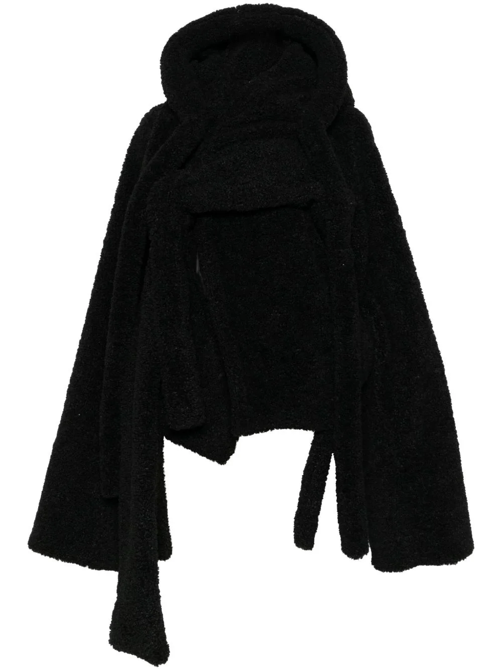 wrap teddy jacket Highlights - Black - Double-breasted button fastening - Classic hood - Two side welt pockets - When buying this unisex item, keep in mind that it is graded in standard men's sizing. Imported Composition Outer: Polyester 100% Lining: Polyester 100% SIZE & FIT Model measurements Height 5 ft 10 in(1.78 m) Bust/Chest 33.85 in(86 cm) Hips 36.61 in(93 cm) Waist 26.77 in(68 cm) FittingInformation This unisex piece is designed for an oversized fit whether you usually select women's or men's sizes Constructed with additional length on the sleeve Made from a midweight fabric