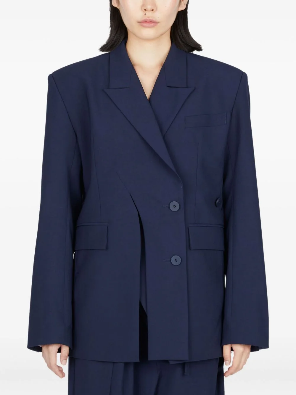 Signature Split double-breasted blazer Highlights - Navy blue - Padded shoulders - Asymmetric hem - Double-breasted button fastening - Notched lapels - Long sleeves Imported Composition Polyester 53%, Virgin Wool 43%, Elastane 4% Washing instructions Read Manufacturer Guidelines