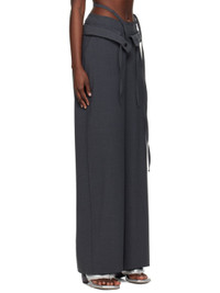 Handcrafted stretch polyester- and wool-blend broadcloth trousers. · Layered construction · Raw edge and drawstring at waistband · Three-pocket styling · Offset zip-fly · Self-tie straps at waist Wholesale exclusivity at SSENSE. Supplier color: Anthracite/Anthra 53% polyester, 43% wool, 4% elastane. Made in Greece 241016F087001