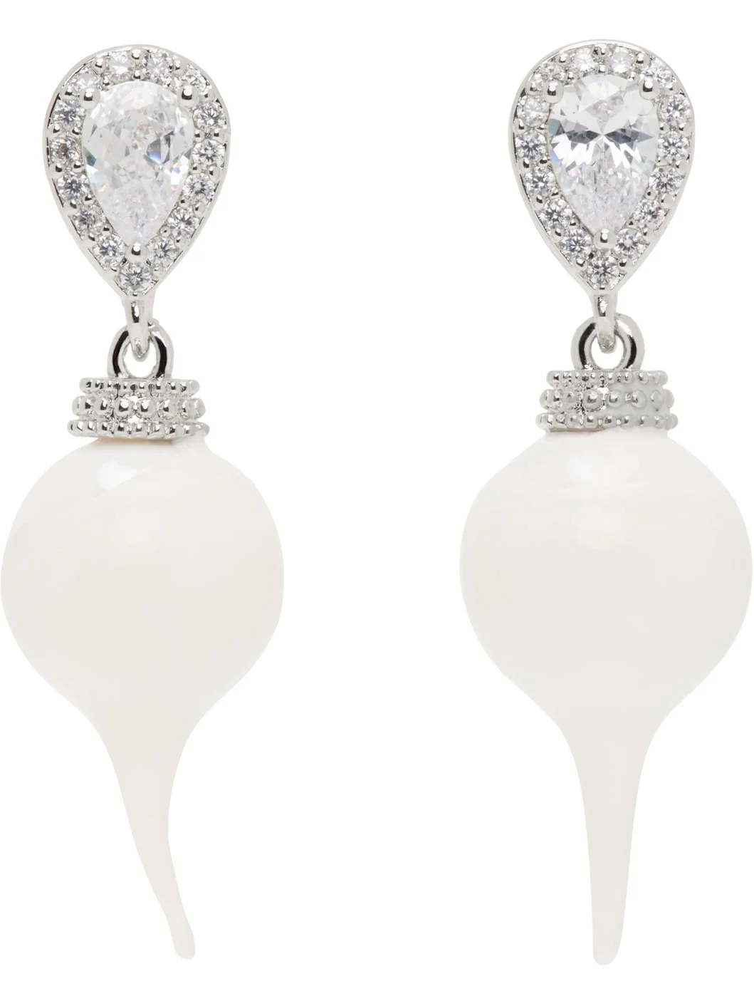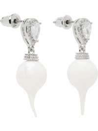 Pair of drop earrings in silver tone. · Prong-set crystals at face · Beige rubberized coating at faux-pearl charm · Post-stud fastening · H1.25" x W0.5" Available exclusively at SSENSE. Each item is unique. Please note finishings may vary. Supplier color: Beige Metal, rubber, stone. Made in Greece 251016F022006