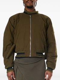 cotton-blend bomber jacket Highlights - Khaki - Front zip fastening - Two diagonal pockets to the sides - Strap detailing - Ribbed trim Imported Composition Fabric 100%