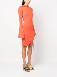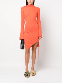 asymmetric-neck midi dress Highlights - Orange - Stretch organic cotton - Asymmetric neck - Bell sleeves - Asymmetric hem - This item is made from at least 50% organic materials. Imported Composition Organic Cotton 97%, Spandex/Elastane 3% SIZE & FIT Model measurements Height 5 ft 10 in(1.79 m) Bust/Chest 31.9 in(81 cm) Hips 36.6 in(93 cm) Waist 24.4 in(62 cm) FittingInformation Designed for a close fit throughout Made from a midweight stretch fabric, this piece offers elasticity and flexibility when worn This piece fits true to size – take your usual size