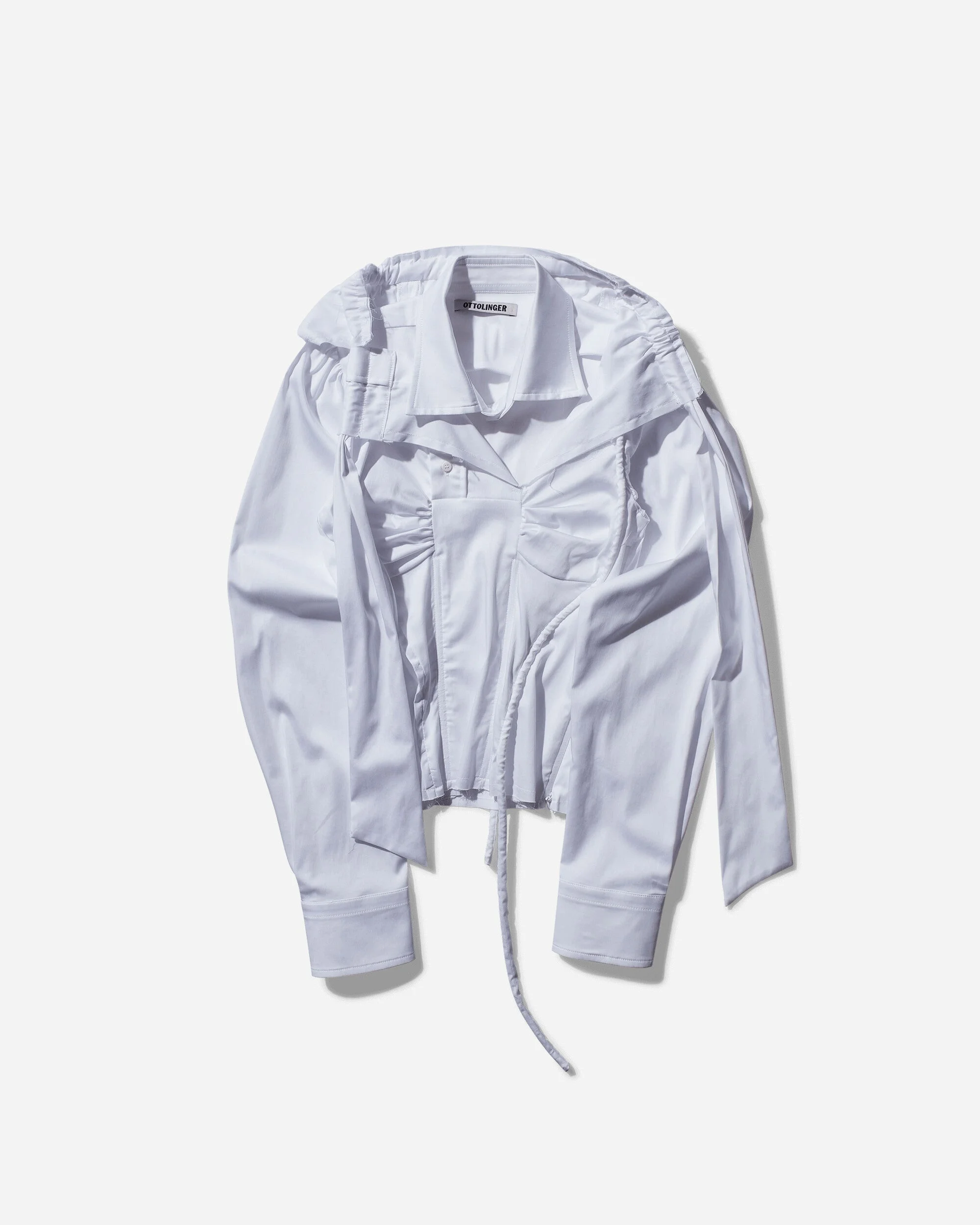 Ottolinger Lavalliere Shirt White Berlin-based label Ottolinger is a collaboration between Swiss-born designers Christa Bosch and Cosima Gadient. Guided by an unblinking femininity liberated from the constraints of gender and the conventions of tradition,the German brand is a fusion of rebellious spirit and meticolous craftsmanship. - 93% Cotton, 3% Elastane - Regular Fit - Lavalliere Detailing - Classic Collar - Button Closure - Strap Detailing - Button Cuffs - Style Code: 2211010300 WHT