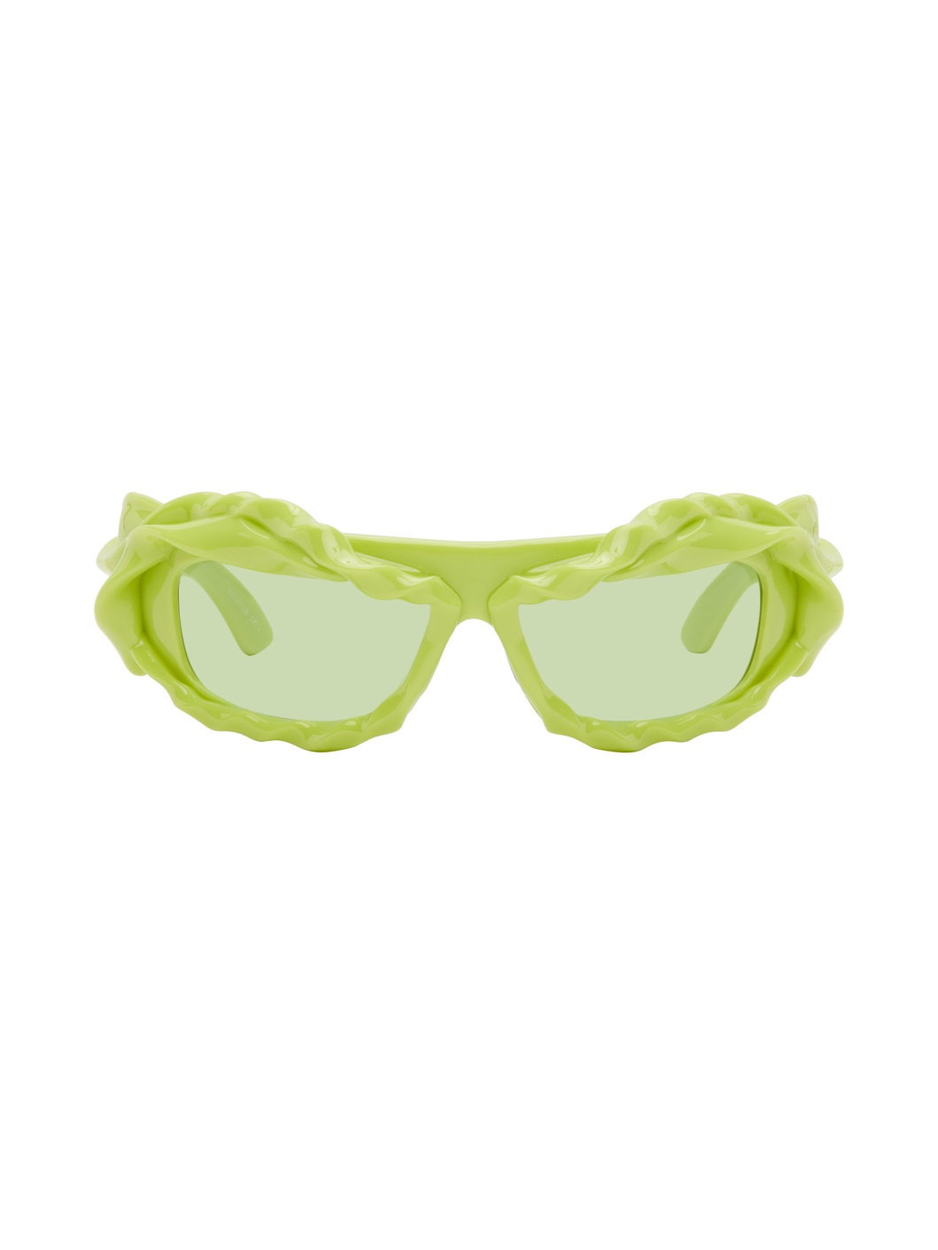 Sculptural wraparound acetate-frame sunglasses in green. · Green lenses · 100% UVA/UVB protection, Category 3 · Integrated nose pads · Includes case · Size: 63.20 118 Supplier color: Acid green