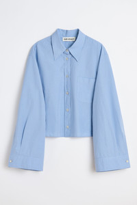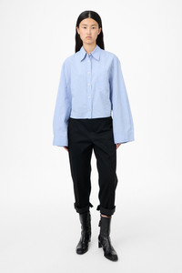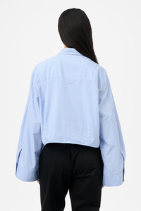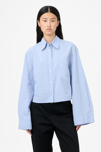 Details · Italian fabric · 100% Cotton · Micro check pattern · Front line seams · Single chest pocket · Mother of pearl buttons · Double layered back yolk · Darted for shape · Asymmetrical hem · Oversized fit · W4252BB Description Our Balloon Shirt in Micro Chip Check Super Poplin. Produced in Italian cotton fabric with a micro check pattern, the women's Balloon Shirt has an oversized fit with darts for shape and features front line seams, a single chest pocket, mother of pearl buttons, a double layered back yoke and an asymmetrical hem.