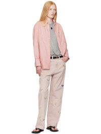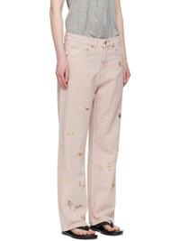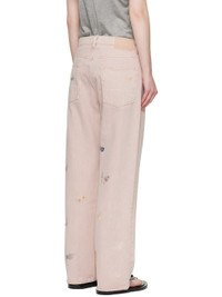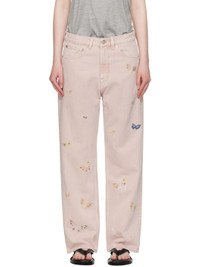 Non-stretch denim jeans. Subtle fading and embroidered graphics throughout. · Pigment-dyed · Wide straight-leg · Belt loops · Five-pocket styling · Zip fly · Rubberized logo patch at back waistband Supplier color: Rose butterfly 100% cotton. Made in Portugal 252803F069000