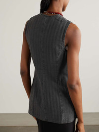 EDITORS'NOTES Our Legacy's tank top is cut from specially sourced Italian denim patterned with stripes and treated to a heavy wash to evoke the look and feel of genuine vintage finds. The two-way zip fastening encourages experimentation, so play around with how you wear it. SIZE & FIT Model measurements: - Fits small to size, take one size larger than normal - Designed for a slim fit - Mid-weight, non-stretchy fabric - Model is 180cm/ 5'11" and is wearing an EU 36 - Bust: 80cm/ 31.5" - Waist: 65cm/ 25.6" - Hip: 79cm/ 31.1" DETAILS & CARE - Tonal-gray denim - Two-way zip fastening through front - 100% cotton - Machine wash