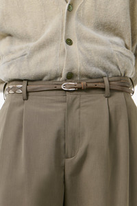Details · Italian cow leather · Metal pin buckle · Leather keeper · Sliding studs along full length · Adjustable rivet placement · 1 cm width · Dust bag · A2268BOB Description Our Billow Belt in Overcast Blue Leather. Produced in Italian cow leather, this 1 cm belt is detailed with sliding studs along its full length for adjustable rivet placement, and features a metal pin buckle, a leather keeper and arrives with a dust bag. This product is crafted from carefully sourced leather. As a natural material, leather carries subtle traces of the animal's life. These natural imperfections bring a unique character to each product, expressing an original and authentic look. The product shall be shaped by its wearer and naturally distress over time to complete the design process.
