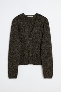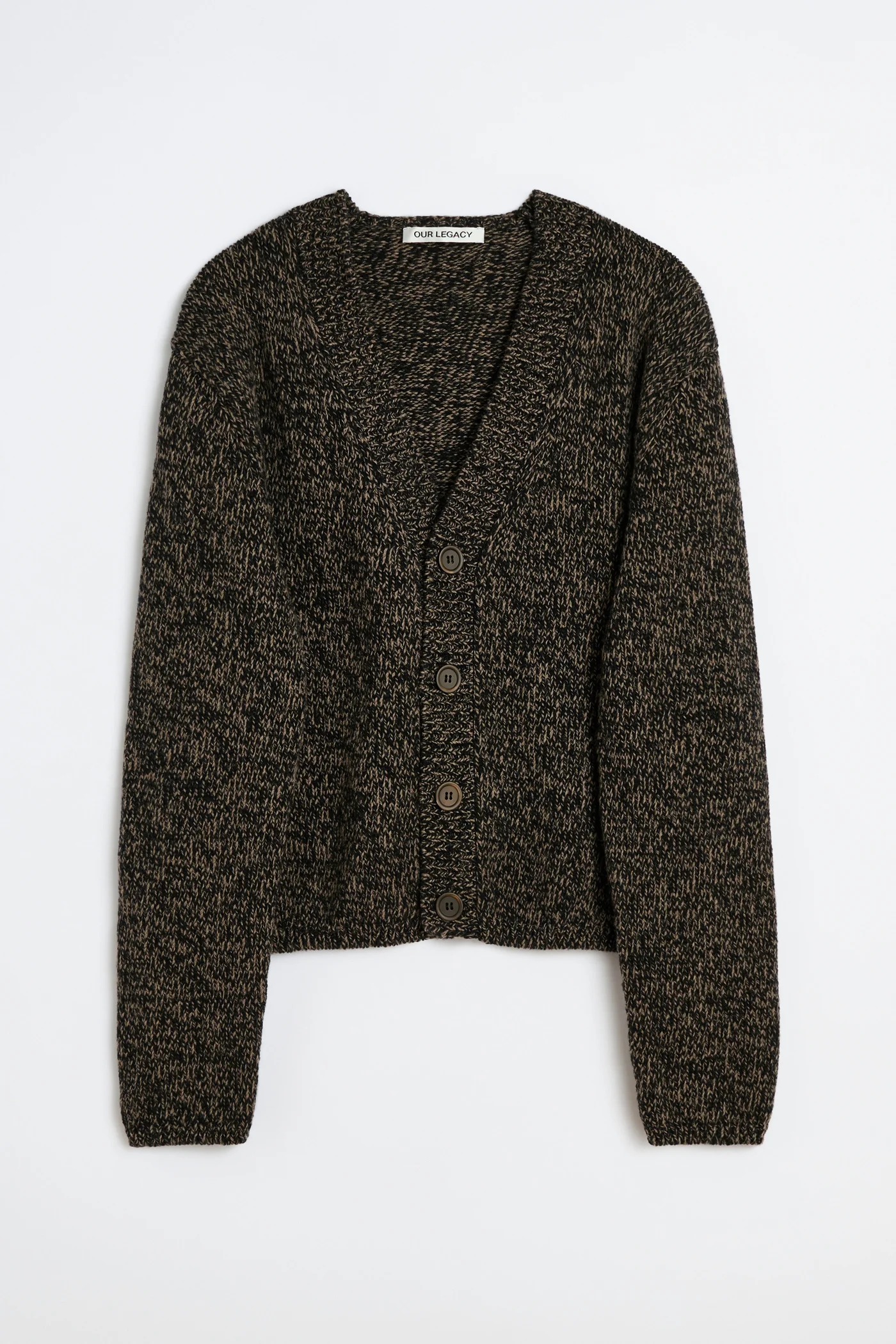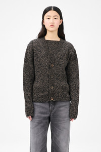 Details · Italian mouline yarn · 100% Superfine wool · V-neck collar · Ribbed placket · Mother of pearl buttons · Ribbed cuffs and hem · Dropped shoulders · Relaxed fit · W4253AB Description Our Academy Cardigan in Bear Twist Mouline Wool. Produced in Italian superfine mouline wool yarn, the women's Academy Cardigan has a relaxed fit with dropped shoulders and features a V-neck collar, ribbed placket, mother of pearl buttons, and ribbed cuffs and hem. This garment is manufactured using a carefully sourced yarn. The natural characteristics of the yarn, combined with the construction of the knit allows the garment to expand when worn. The garment shall be shaped by its wearer and naturally distress over time to finish the design process.