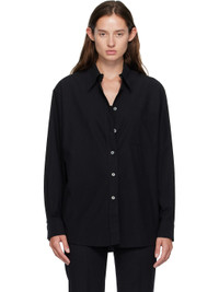 TENCEL™ lyocell- and cotton-blend poplin shirt. · Spread collar · Button closure · Patch pocket at chest · Curved hem · Dropped shoulders · Buttoned barrel cuffs · Darts at back · Mother-of-pearl hardware Supplier color: Black casual liquid poplin 60% lyocell, 40% cotton. Made in Portugal 252803F109005