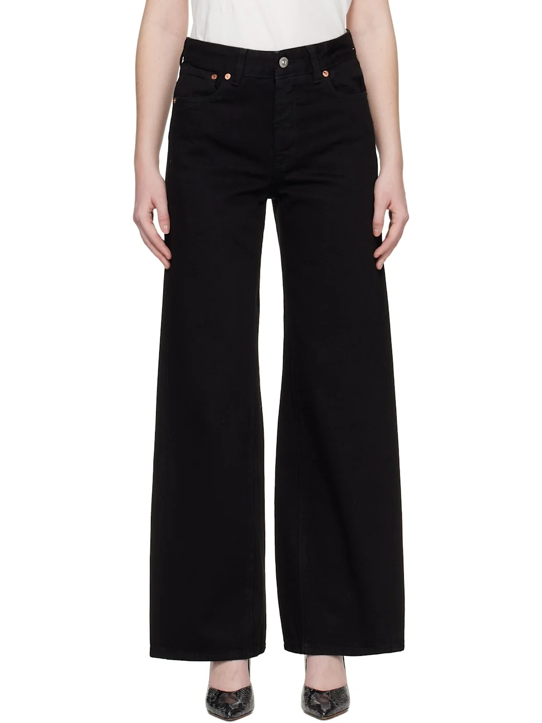 Non-stretch selvedge denim jeans. · Pigment-dyed · Mid-rise · Belt loops · Button fly · Five-pocket styling · Paneled inseams · Rubberized logo patch at back waistband Supplier color: Black Selvedge 100% cotton. Made in Portugal 261803F069014