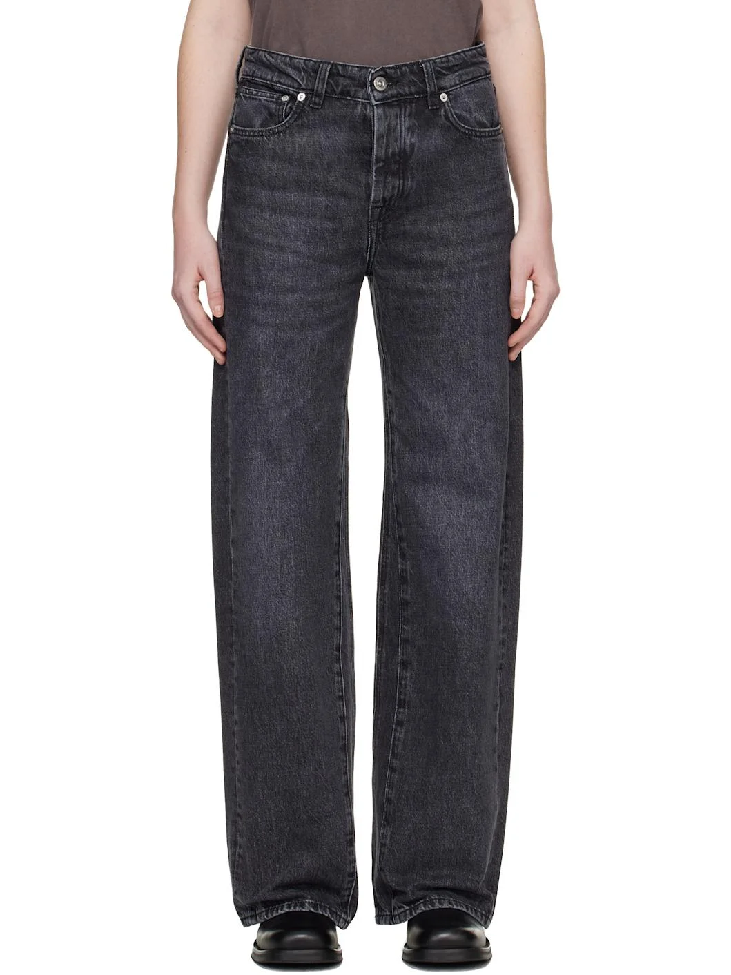 Non-stretch denim jeans. · Fading and whiskering throughout · Mid-rise · Belt loops · Button fly · Five-pocket styling · Paneled inseams · Logo patch at back waistband Supplier color: Supergrey Wash 100% cotton. Made in Portugal 261803F069012