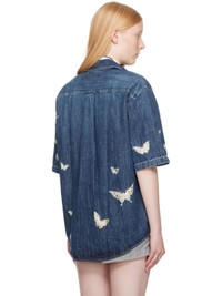 Non-stretch denim shirt. Embroidered graphics and fading throughout. · Spread collar · Button closure · Shirttail hem · Box pleat at back yoke · Mother-of-pearl hardware · Contrast stitching in white Supplier color: Western blue butterfly 100% cotton. Made in Portugal 251803F109003