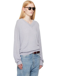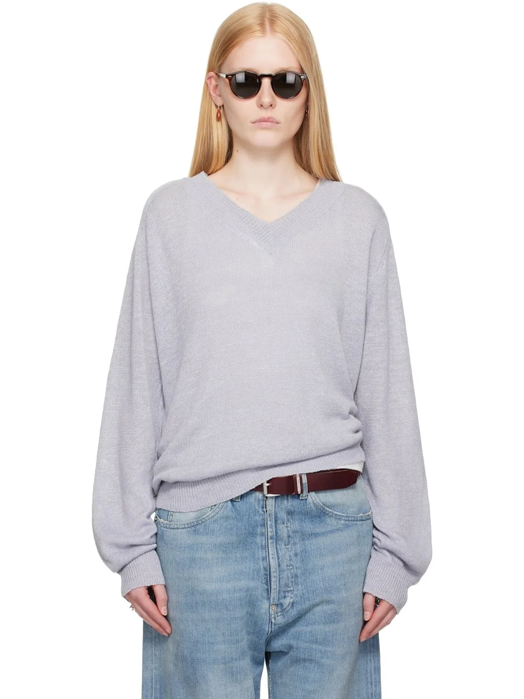 Knit linen- and cotton-blend sweater. · Rib-knit V-neck, hem, and cuffs · Raglan sleeves Supplier color: Powder blue cyclone linen 70% linen, 30% cotton. Made in Portugal 252803F100000