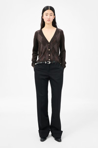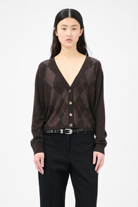 Details · Italian yarn · 100% Wool · Tonal argyle pattern · Two different wool yarn twists · Diagonal line detailing · Loose hanging threads · Unfinished aesthetic · Classic cardigan silhouette · Ribbed cuffs and hem · Dropped shoulders · Cropped fit · W4253IP Description Our Ivy Cardigan in Pub Argyle Fine Wool. Produced in a Italian tonal argyle knit created with two wool yarns in different twists, the women's Ivy Cardigan features subtle textural differences that form the argyle diamond pattern. The design is cut with diagonal lines in a lifting color and finished with loose threads hanging down to create a unique and unfinished look. This garment is manufactured using a delicate material with a naturally loose construction. Please handle with care and wash according to washing instructions. Be especially careful with jewelry and other pointed objects that might harm the surface.