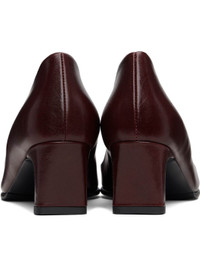 Vegetable-tanned buffed leather heels. · Almond toe · Covered block heel with rubber injection · Leather sole with rubber injection · Heel: H2.25" Supplier color: True dyed lovers red leather Upper: leather. Sole: rubber. Made in Italy 252803F122001