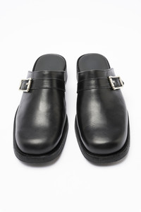 Details · Portuguese leather · Vibram outsole, made in USA · Kilger leather midsole from Germany · Brass buckle closure · Fully leather lined · A2217CVSE Description Our Camion Mule in Black Leather. Produced in a Portuguese leather, the Camion Mule features a Vibram outsole, a leather Kilger midsole and a cross over strap with a brass buckle closure.