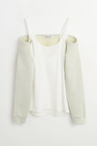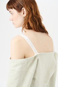 Details · Portuguese jersey · 100% Cotton · Cardigan overlayer in fleece jersey · Ribbed cuffs · Strap shoulder tank underlayer · Distressed details · W2256CY Description Our Cardigan Tank in Yellow Tint Melange Fleece. Produced in Portuguese cotton jersey with distressed details, the womens Cardigan Tank has a regular, straight fit and features a fleece jersey cardigan overlay with rib cuffs and a strap shoulder tank underlayer.