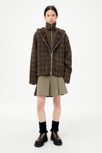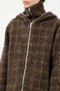 Full Zip Hood Dorf Check Hairy Wool