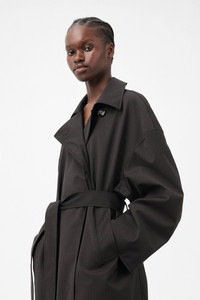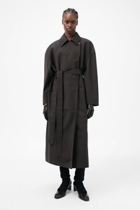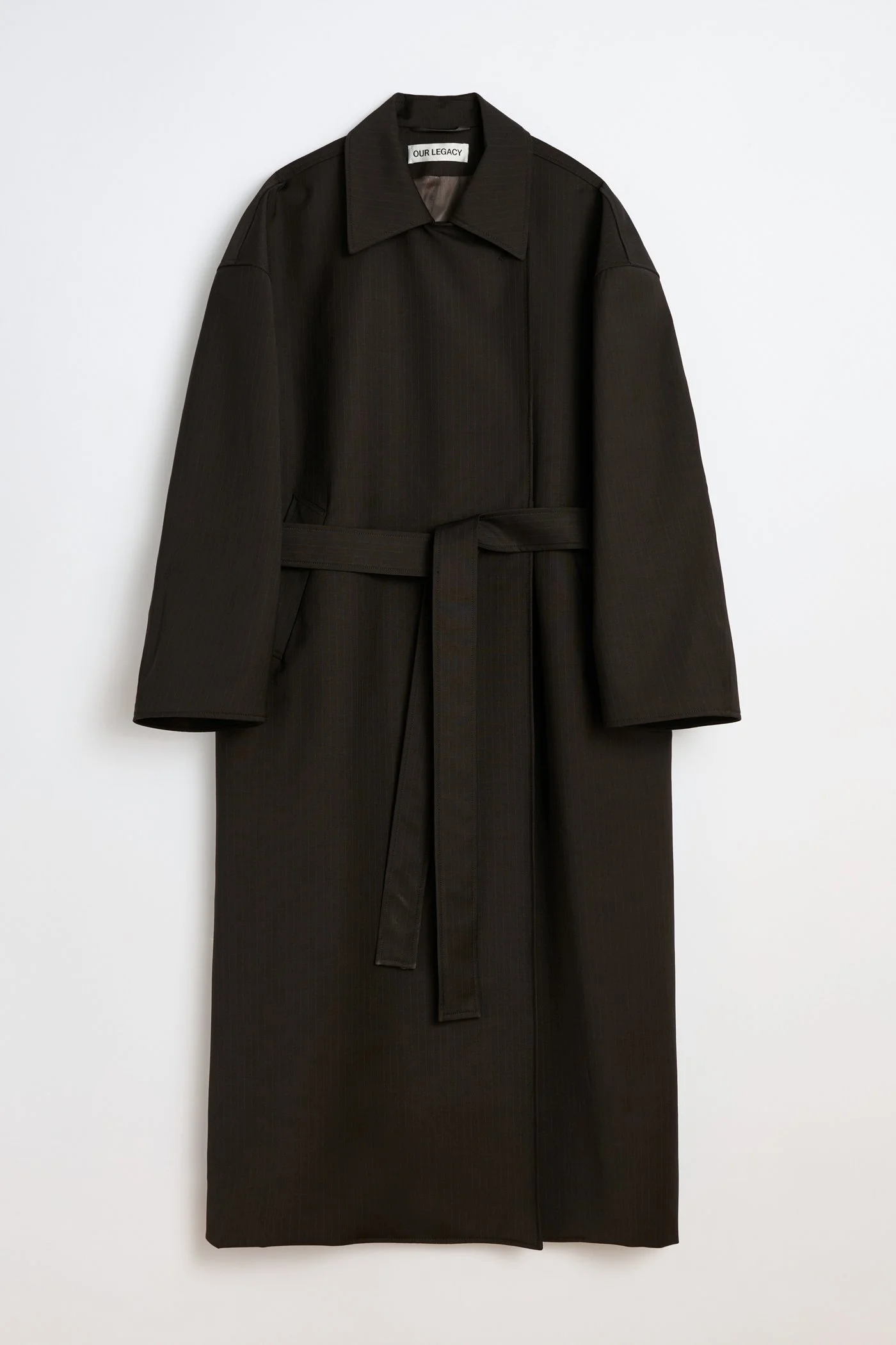 Details · Portuguese fabric · 54% Polyester 44% Wool 2% Elastane · Striped fabric · Dropped shoulders · Hidden placket buttoning · Two welt pockets · Fully lined · Wrap around construction · Waist belt · Our Legacy bean rivet · Oversized fit · W4251CC Description Our Court Coat in Churchill Stripe Membrane Wool. Produced in a striped Portuguese polyester, wool and elastane blend fabric, the women's Court Coat has an oversized fit and features a wrap around construction with a waist belt, dropped shoulders, hidden placket buttoning, two welt pockets and is fully lined.