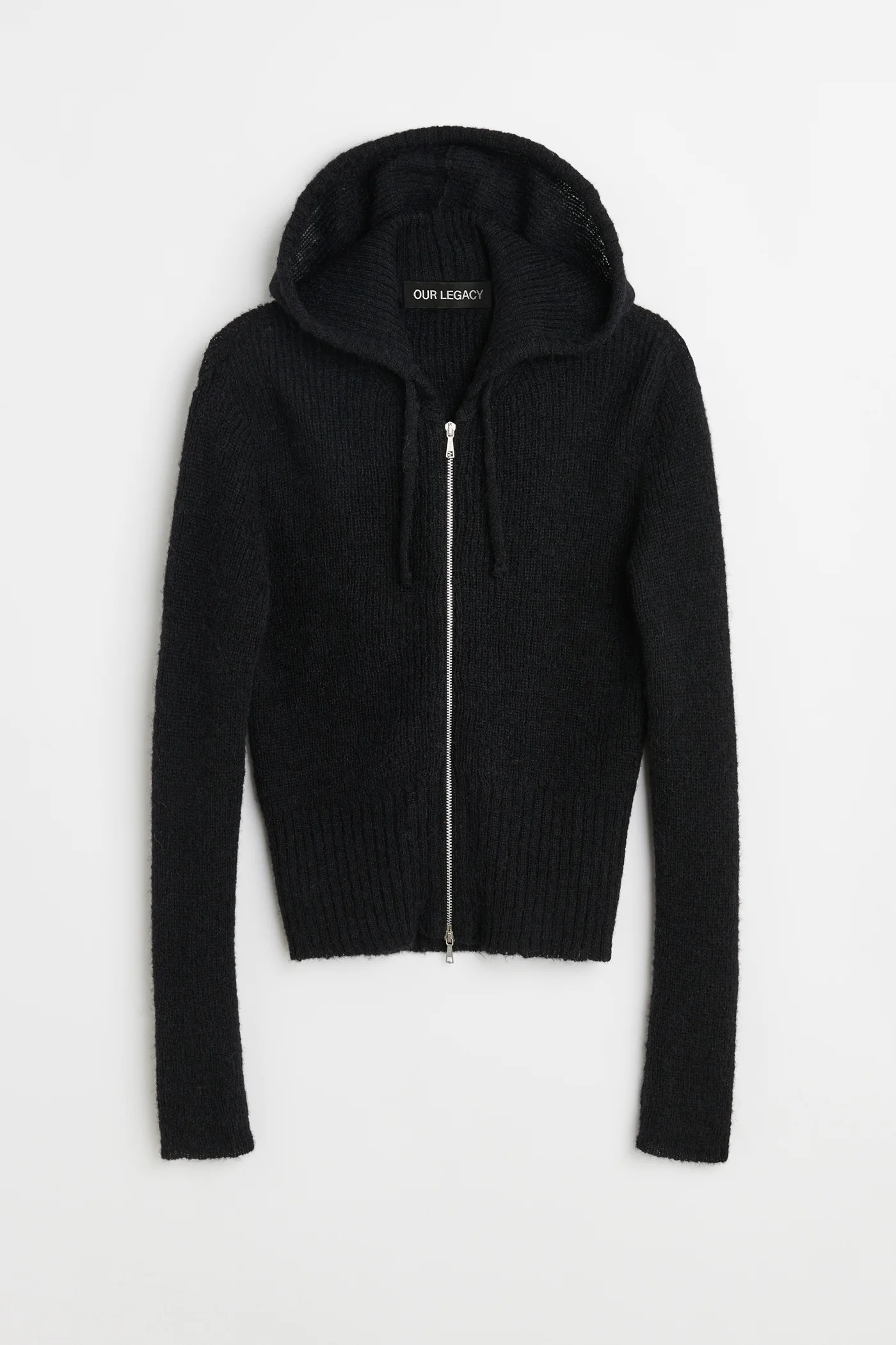 Details · Italian fabric · 55% Alpaca 15% RWS Wool · 22% Recycled Polyamide 8% Polyamide · Ribbed knit · Drawstring hood · Lampo two way zip · Enhanced ribbed hem · W4243CB Description Our Compact Hood in Black Fuzzy Alpaca. Produced in a Italian fabric blend, the womens ribbed knit Compact Hood has a straight fit and features a drawstring hood, a two way zip and an enhanced ribbed hem. This garment is manufactured using a carefully sourced yarn. The natural characteristics of the yarn, combined with the construction of the knit allows the garment to expand when worn. The garment shall be shaped by its wearer and naturally distress over time to finish the design process. To help keep the integrity of the garment please store the garment folded.