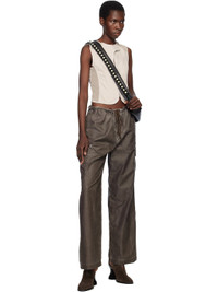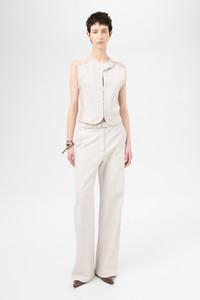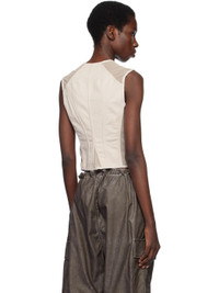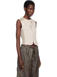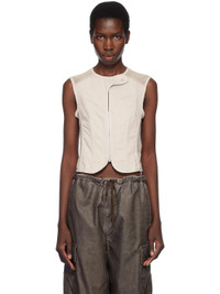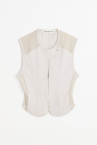 Cotton sateen vest. Darts and mesh panels throughout. · Paneled construction · Button tab at crewneck · Two-way zip closure with hook-eye placket · Cropped hem · Mother-of-pearl hardware Supplier color: Dust bunny Body: 100% cotton. Trim: 100% polyester. Made in Portugal 251803F057000