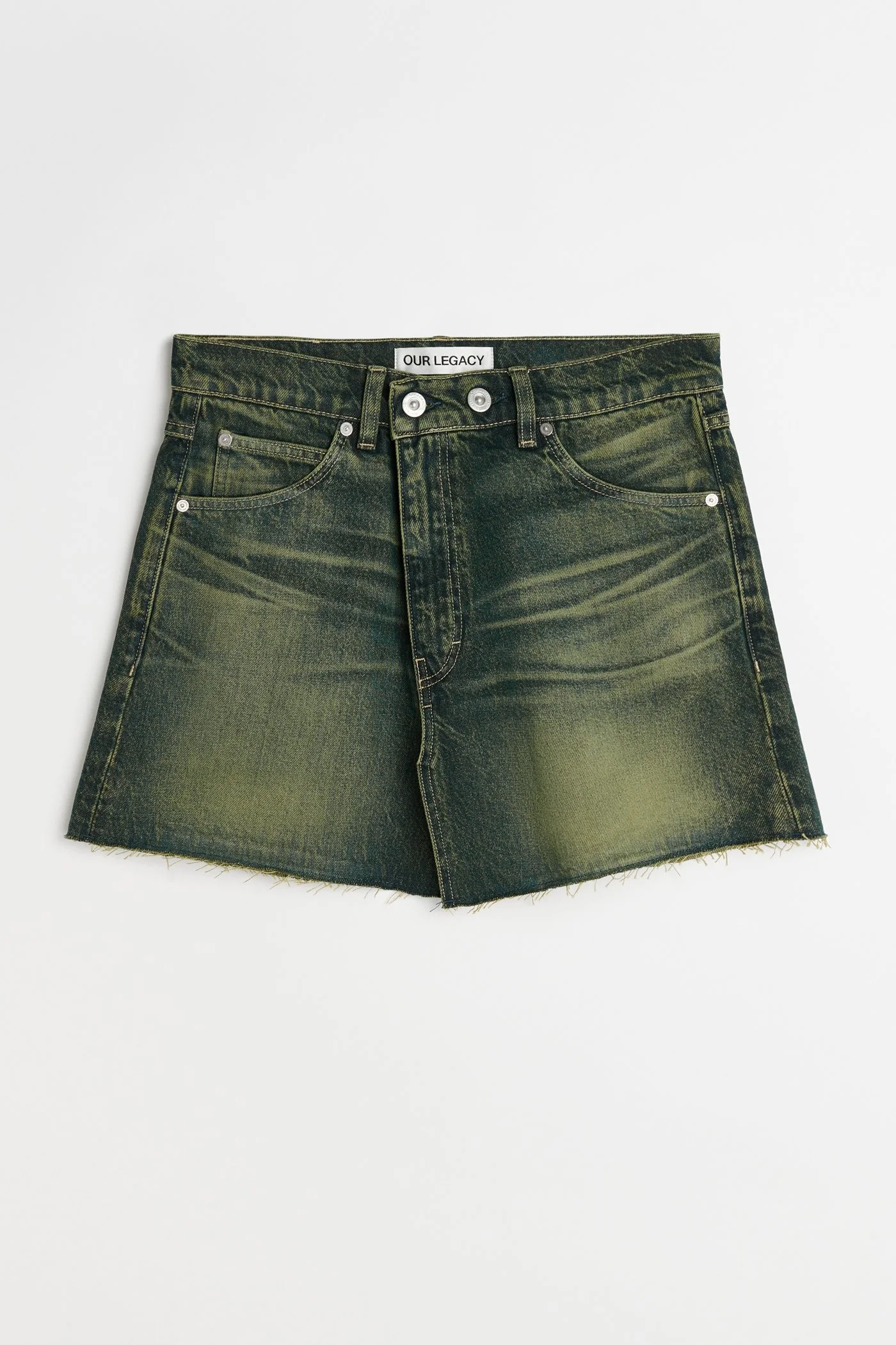 Details · Turkish denim · 100% Cotton · Vintage washed · Front split · Raw edge hem · YKK zip fly · Button closure · Metal rivets · Reinforced back pockets · Our Legacy embossed rubber patch · W2255CSA Description Our Cover Skirt in Mid Blue Denim. Produced in a Turkish vintage washed denim, the womens Cover Skirt have a slim fit and features a front split, a raw edged hem, a YKK zip fly, metal rivets and reinforced back pockets. This garment is manufactured using carefully sourced material with a unique treatment process that will give each garment an individual shade and appearance. This technique could result in some color bleed onto lighter garments or surfaces. The garment shall be shaped by its wearer and naturally distress over time to finish the design process.