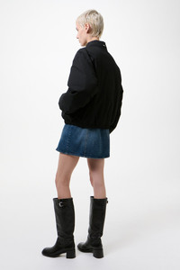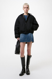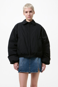 Details · Japanese fabric · 70% Cotton 30% Nylon · Tab with snap at collar stand · Hidden zip fastening with lip · Two front welt pockets · Interior zip pocket · Padded with duck down and synthetic Hallofil · Elasticated hem and cuffs · Fully lined · Inside welt pocket with zip closure · OL bean rivet · Cropped, boxy fit · W2261CB Description Our Cropped Avenue Puffa in Black Tide Cotton Nylon. Produced in a Japanese cotton and nylon blend fabric, the Cropped Avenue Puffa has a cropped, boxy fit and features a tab with snap at collar stand, hidden zip fastening with lip, two front welt pockets, an interior zip pocket, elasticated hem and cuffs, and is fully lined. Padded with duck down and synthetic Hallofil for warmth.