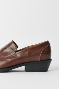 Details · Italian leather · Narrow pinch toe · Twin needle topstitched vamp · Front strap with penny slot · Leather midsole · Vibram sole · Stacked heel · Leather lined · A2257CLC Description Our Cypher Loafer in Castagno Satin Bovine. Produced in soft Italian leather, with a semi shine, the slip on Cypher Loafer features a narrow pinched toe, a Vibram outsole, a leather midsole, twin needled topstiched vamp, a front strap with penny slot and a stacked heel. This product is crafted from carefully sourced leather. As a natural material, leather carries subtle traces of the animal's life. These natural imperfections bring a unique character to each product, expressing an original and authentic look. The product shall be shaped by its wearer and naturally distress over time to complete the design process.