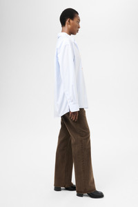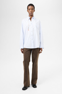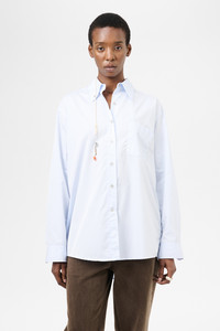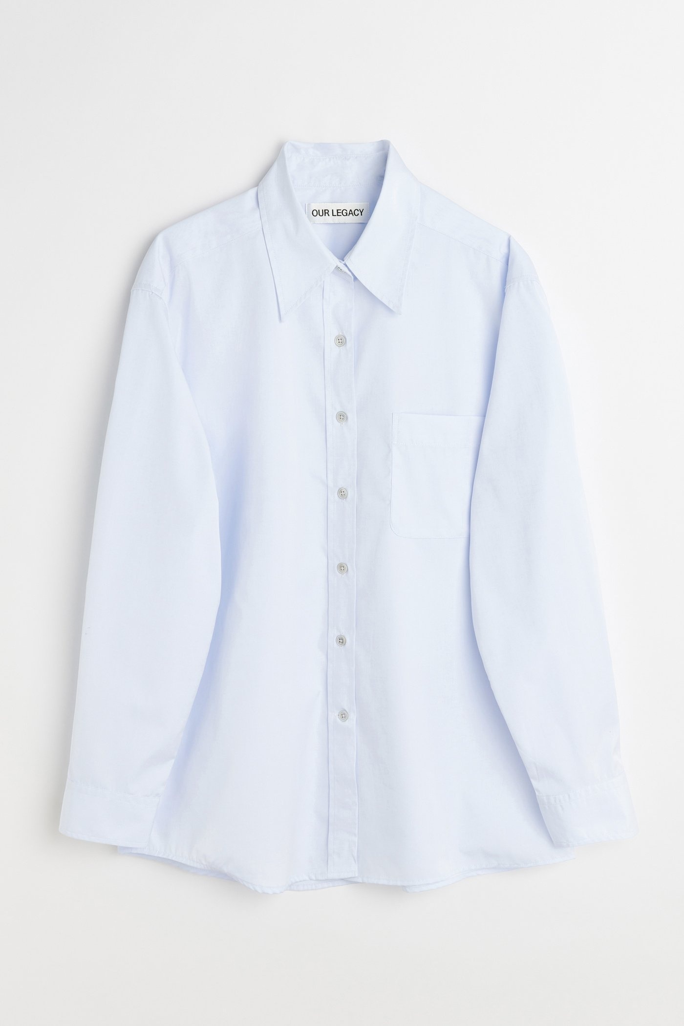 Details · Portuguese poplin fabric · 100% Cotton · Mother of pearl buttons · Single chest patch pocket · Curved hem · Mitered cuffs · Wrap side seams · Relaxed, wide fit · W2252FD Description Our Favourite Shirt in Dining Blue Poplin. Produced in a Portuguese fine cotton poplin, the womens Favourite Shirt has a relaxed fit and a wide cut and features mother of pearl buttons, a single chest patch pocket, wrap side seams and mitered cuffs.