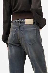 Details · Italian fabric · 100% Cotton · Indigo dyed · Each pair has a unique fade · Extended leg length · Slight boot cut · Five pockets · Steel rivets · Zip fly · Our Legacy embossed patch · W4255FD Description Our Wata Cut in Dusty Phantom. Produced in Italian cotton fabric, the women's Wata Cut has an extended leg length with a slight boot cut and features indigo dyeing, steel rivets, zip fly, five pockets, and an Our Legacy embossed patch. This fabric is crafted by overdyeing ecru material with a fully sustainable synthetic indigo. Following the overdyeing process, artisanal treatments and fades were applied, resulting in a distinctive dirty blue tone. This garment is manufactured using carefully sourced material with a unique treatment process that will give each garment an individual shade and appearance. This technique could result in some color bleed onto lighter garments or surfaces. The garment shall be shaped by its wearer and naturally distress over time to finish the design process.
