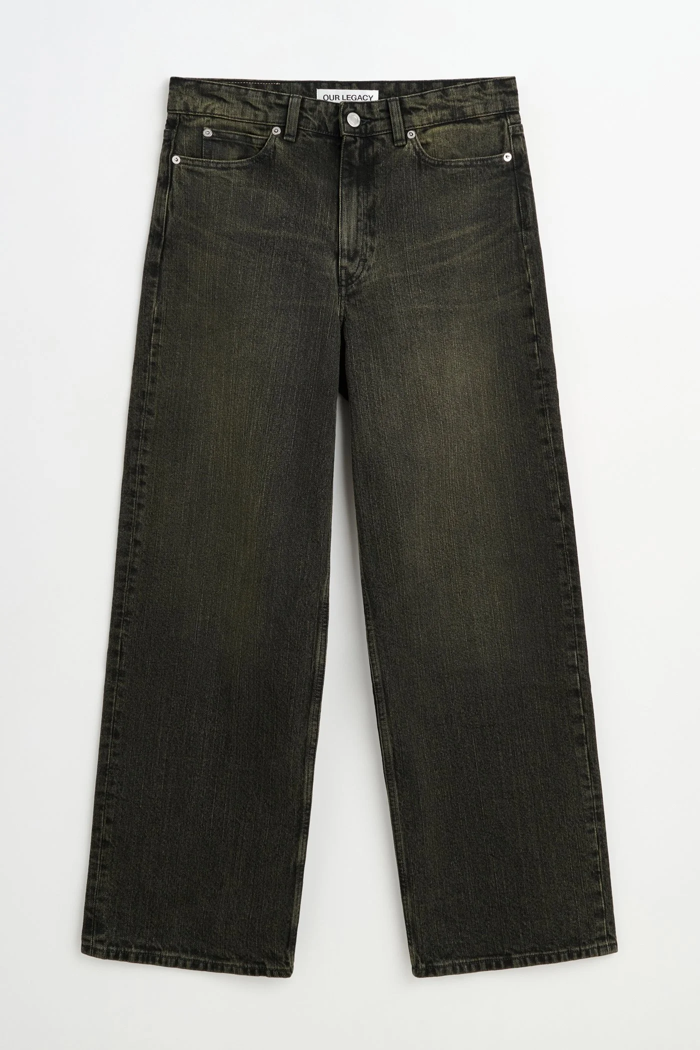Details · Italian chain twill denim · 100% Cotton · Pigment dyed · Vintage sand wash · High waist · Five pockets · YKK zip fly · Embossed Our Legacy rubber patch · Straight, relaxed fit · W2255FBS Description Our Full Cut Jeans in Black Sand Chain Twill. Produced in a pigment dyed Italian chain twill denim with a vintage sand wash, the womens Full Cut jeans sit on the hip and have a straight, relaxed fit and feature a YKK zip fly, metal rivets and reinforced back pockets. This garment is manufactured using carefully sourced material with a unique treatment process that will give each garment an individual shade and appearance. This technique could result in some color bleed onto lighter garments or surfaces. The garment shall be shaped by its wearer and naturally distress over time to finish the design process.
