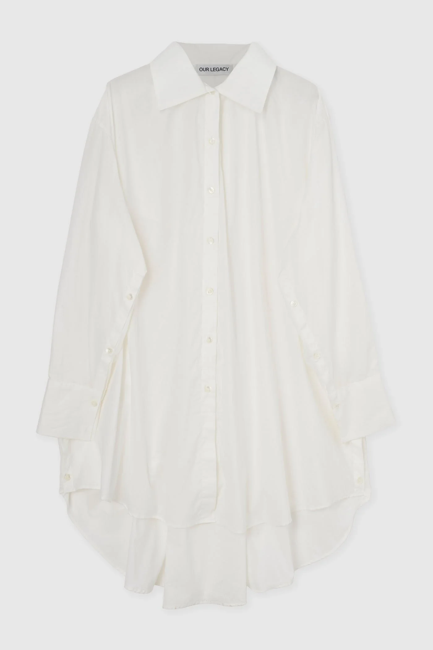 Details · Portuguese fabric · 100% Cotton · Light weight voile · Gathered neckline · Mother of pearl buttons · Deep vented cuffs · Gathered panels on back shoulder yoke · Long gusseted back vent with button closure · Generous, relaxed fit · W2257GW Description Our Gale Dress in White Voile. Produced in a light weight Portuguese cotton voile fabric, the womens Gale Dress has a generous, long cut and features deep vented cuffs, gathered details around the neckline, armholes and back panels, a long gusseted back vent with button closure and mother of pearl buttons.
