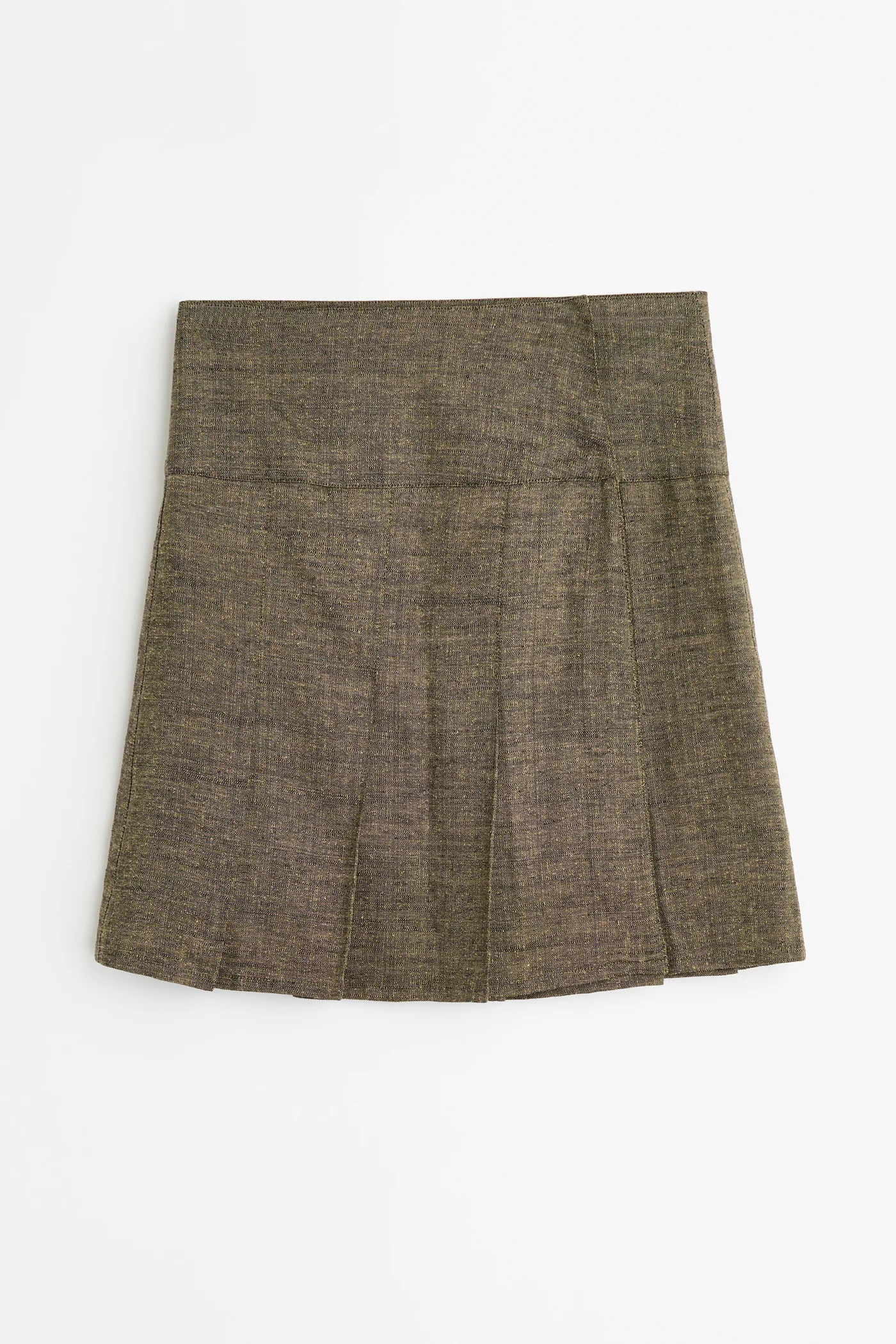 Details · Italian fabric · 52% Linen 28% Silk 20% Cotton · Wide girdle belt waistband · Sew-on snap closure · A-line silhouette · Wide pleat design · W2264GDH Description Our Girdle Skirt in Deep Husk Soft Grain Weave. Produced in an Italian linen, silk and cotton blend with a softly textured grain, the women's Girdle Skirt has an A-line silhouette and features a wide girdle belt waistband, a sew-on snap closure and a wide pleat design.