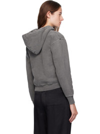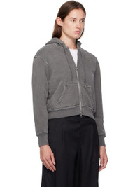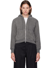 Heavyweight cotton French terry hoodie. · Piece-dyed · Fading throughout · Drawstring at hood · Two-way Lampo zip closure · Patch pockets at waist · Cropped hem · Rib-knit hem and cuffs · Dropped shoulders Supplier color: Worn black hefty fleece 100% cotton. Made in Portugal 252803F097006