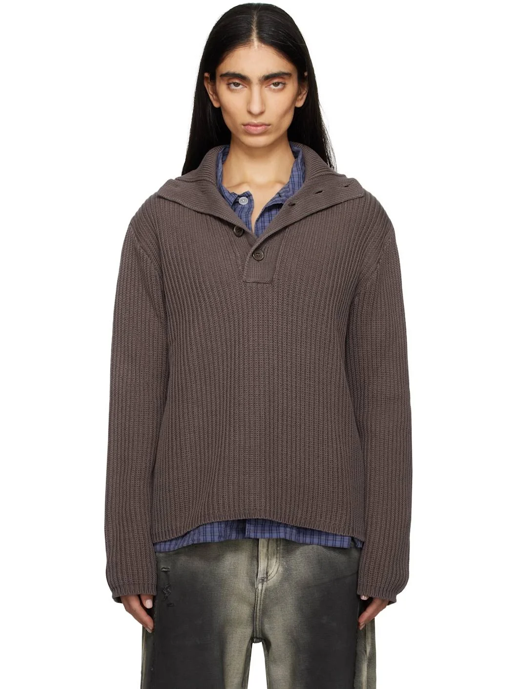 Garment-dyed rib-knit cotton polo. · Boxy-fit · Turtleneck · Five-button placket · Dropped shoulders · Mother-of-pearl hardware Supplier color: Wet bark/Dry cotton 100% cotton. Made in Portugal 251803F108002