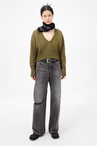 Details · Italian denim · 100% Cotton · Pigment dyed · Distressed by hand · Each pair has a unique fade · Five pockets · Button fly · Paneled inseam · OUR LEGACY embossed patch · Sit above the hip · Slouchy, wide leg fit · W4255TH Description Our Treble Cut in Highway Coffee. Produced in Italian denim woven with rich brown threads in the warp and black threads in the weft, creating a deep, dynamic brown tone reminiscent of nostalgic diners and coffee shops. The women's Treble Cut jeans sit above the hip and have a slouchy, wide leg fit. The five pocket jeans feature pigment dyeing, hand-distressed fading, a button fly, a paneled inseam, a natural rubber OUR LEGACY embossed patch. This garment is manufactured using carefully sourced material with a unique treatment process that gives each piece an individual shade and appearance. This technique may result in some color bleeding onto lighter garments or surfaces. This product features intentional holes that will gradually expand and evolve with wear. The garment shall be shaped by its wearer and naturally distress over time.