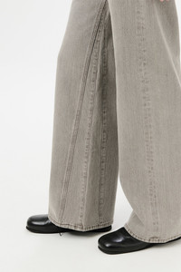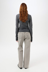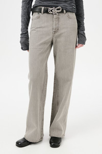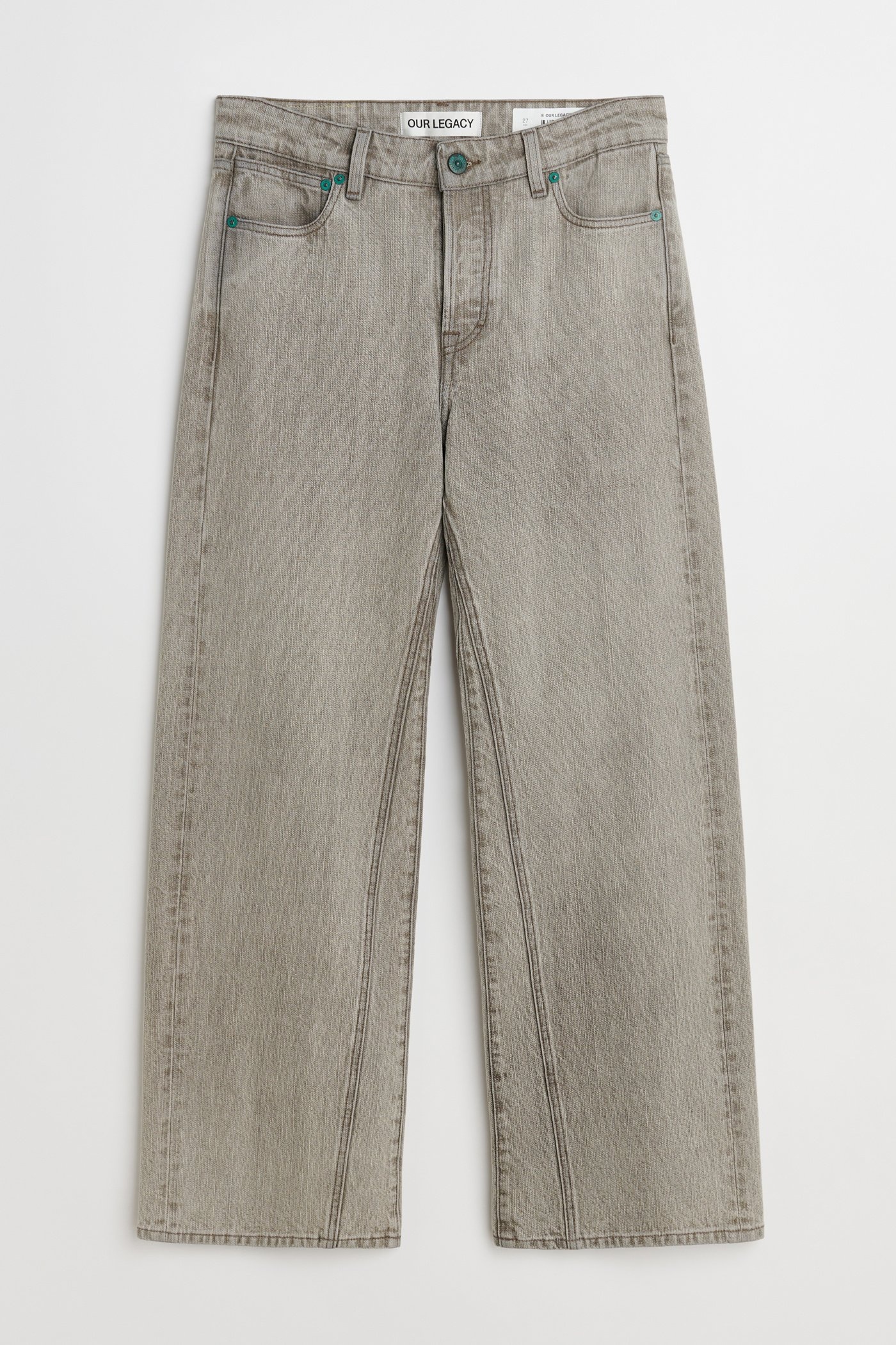 Details · Italian fabric · 100% Cotton · Bleach washed · Five pockets · Button fly · Paneled inseam · OUR LEGACY embossed patch · Sit above the hip · Slouchy, wide leg fit · W4245TCC Description Our Treble Cut in Concrete Chain Twill. Produced in an Italian bleach washed denim, the womens Treble Cut jeans sit above the hip and have a slouchy, wide leg fit. The five pocket jeans feature a button fly, a paneled inseam, an OUR LEGACY embossed patch. This garment is manufactured from carefully sourced denim fabric. Each garment is unique and has been finished with a hand-made bleach process to achieve the desired effect. The garment shall be shaped by its wearer and naturally distress over time to finish the design process.