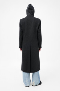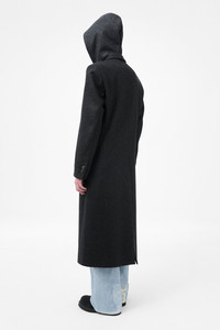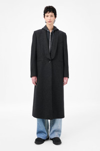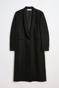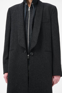 Details · Italian fabric · 80% Virgin Wool 20% Polyamide · Single breasted · Tuxedo shawl lapel · Padded shoulders · Horn buttons · Fully lined · Link button fastening · Jet pockets · Single back vent · Oversized, longer fit · W4251SG Description Our Supper Coat in Granite Water Repellent Melton. Produced in Italian wool and polyamide fabric with water repellent finish, the women's Supper Coat has an oversized, longer fit with a slight cinch at the waist and features a single breasted design, tuxedo shawl lapel, padded shoulders, horn buttons, full lining, link button fastening, jet pockets and a single back vent.