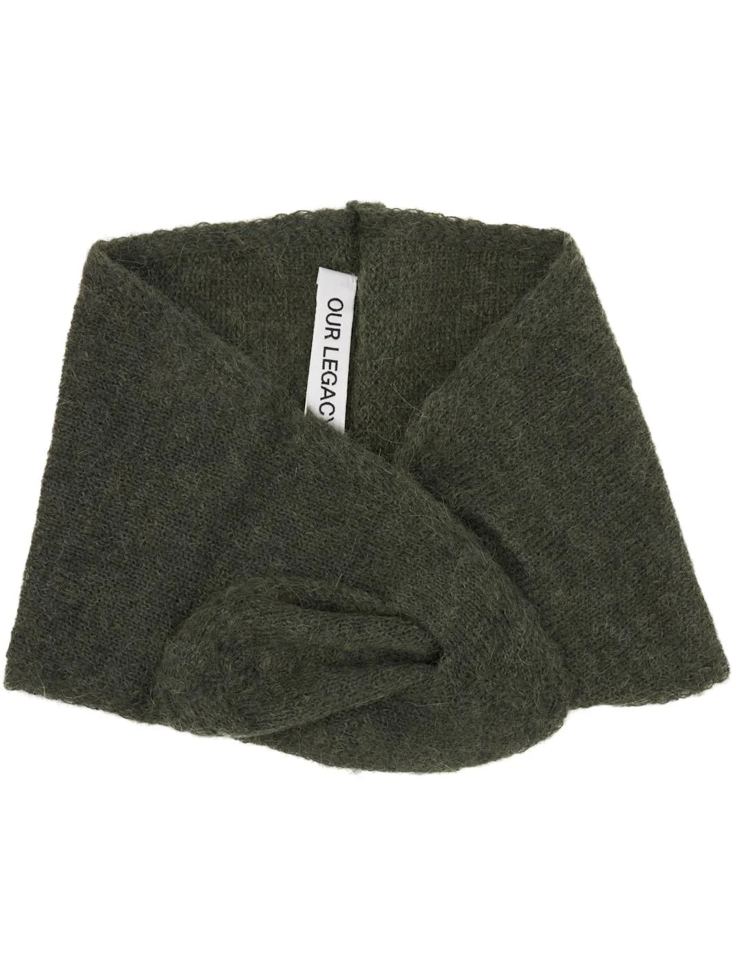 Triangular knit alpaca-blend scarf. · Rolled seams at length · Pull-through fastening · L27.5" x W8" Supplier color: Moss Green Fuzzy Alpaca 55% alpaca, 30% polyamide, 15% wool. Made in Portugal 252803F028001