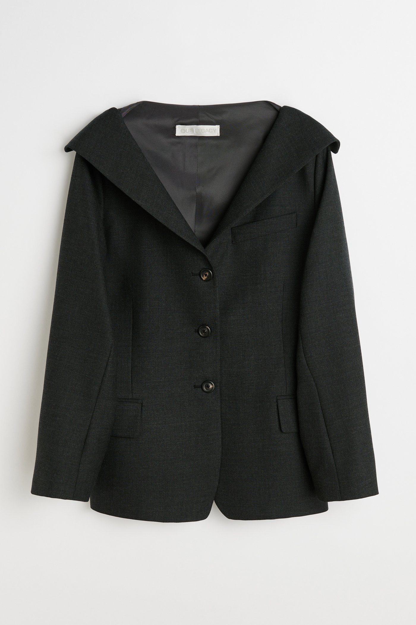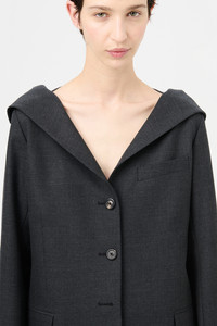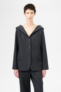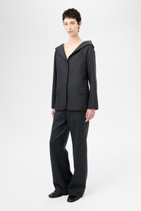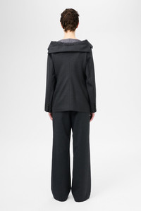 Details · Portuguese suiting fabric · 100% Wool · Collapsed collar · Unconstructed · Angled chest pocket · Three button closure · Horn buttons · Welt pockets with flap closure · Sleeve vent with button closure · Darted for shape · Relaxed fit · W2250KP Description Our Kaonashi Blazer in Premium Charcoal Office Wool. Produced in a Portuguese wool suiting fabric, the womens Kaonashi Blazer has a relaxed unconstructed fit with darts for shape and features a collapsing collar which can be styled either buttoned up or hanging off the shoulders, angled chest pocket, sleeve vents with four buttons and two front welt pockets with flaps.