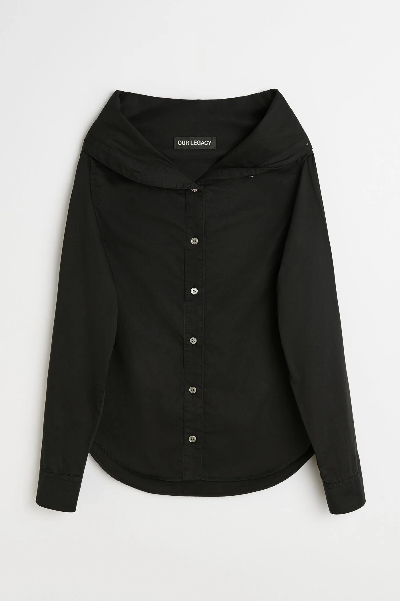 Details · Turkish fabric · 100% Cotton · Satin finish · Collapsed collar · Mother of pearl buttons · Curved hem · Regular fit · W2252KB Description Our Kaonashi Shirt in Black Satin. Produced in a Turkish cotton fabric with a satin finish, the women's Kaonashi Shirt has a regular, straight cut and features a collapsing collar which can be styled either buttoned up or hanging off the shoulders, french seams on the sleeve and sideseam, buttoned cuffs and a curved hem.