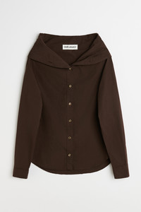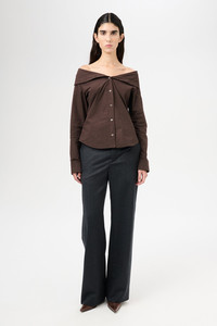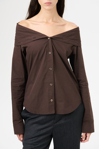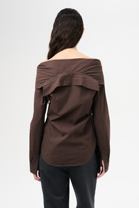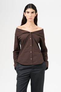 Details · Italian textured poplin · 100% Cotton · Collapsed collar · Mother of pearl buttons · Curved hem · Regular fit · W2252KH Description Our Kaonashi Shirt in Hefty Brown Coarse Poplin. Produced in a textured Italian cotton poplin, the womens Kaonashi Shirt has a regular, straight cut and features a collapsing collar which can be styled either buttoned up or hanging off the shoulders, french seams on the sleeve and sideseam, buttoned cuffs and a curved hem.