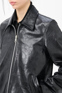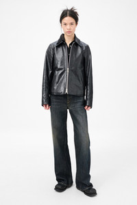 Details · Italian cow leather · Vegetable tanned · Fully lined · Lampo two way zip · Jet front pockets · Metal OUR LEGACY bean rivet · Straight hem · Minimalist, boxy fit · W4239MTD Description Our Mini Jacket in Top Dyed Black Leather. Produced in a vegetable tanned Italian leather, the minimalist Mini Jacket has a boxy fit and features a Lampo two way zip, a cotton and viscose lining and jet front pockets. This product is crafted from carefully sourced leather. As a natural material, leather carries subtle traces of the animal's life. These natural imperfections bring a unique character to each product, expressing an original and authentic look. The product shall be shaped by its wearer and naturally distress over time to complete the design process.