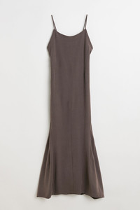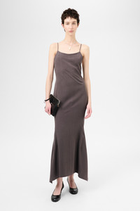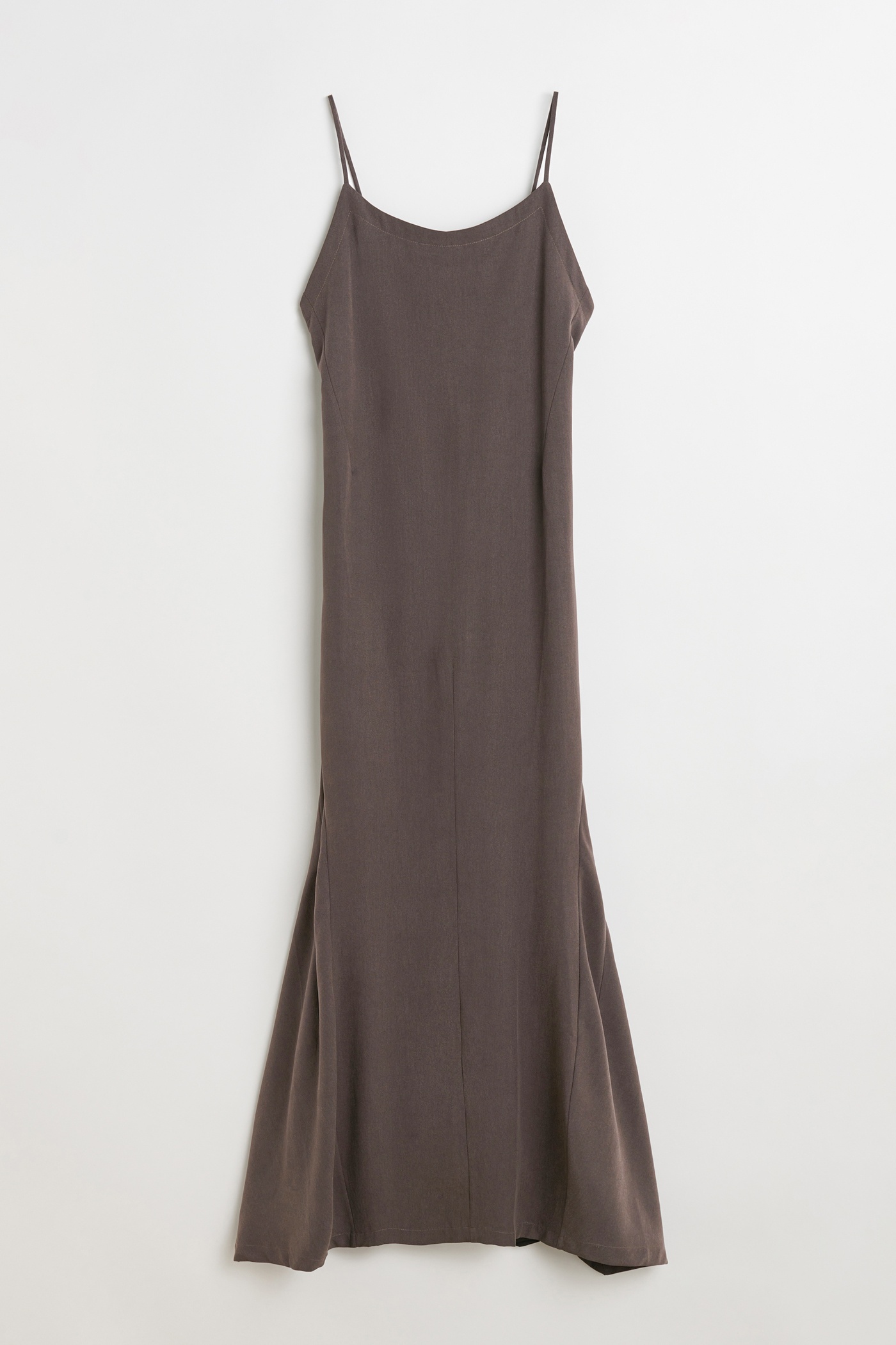 Details · Italian fabric · 100% Lyocell · Adjustable tie shoulder straps · Darted for shape · Deep back · Fish tail silhouette · Elongated, tailored fit · W2257NC Description Our Naiad Dress in Chocolate Plum Rustic Lyocell. Produced in an Italian lyocell fabric, the womens Naiad Dress has an elongated, fitted silhouette and features adjustable tie shoulder straps, a deep back and a fish tail silhouette.