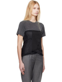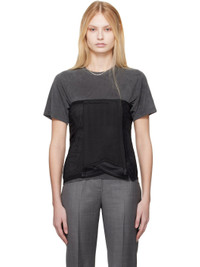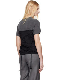 Paneled cotton oxford cloth and sheer stretch nylon mesh corset-style top. Boning throughout. · Straight neck · Elasticized picot trim at neck and hem · Hook-eye closure · Ruching and drawstrings at front and back · Satin trim at front hem Supplier color: Black refined oxford Body: 100% cotton. Trim 1: 100% polyamide. Trim 2: 86% viscose, 14% silk. Trim 3: 91.2% polyamide, 8.8% elastane. Made in Portugal 242803F111003