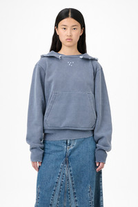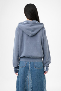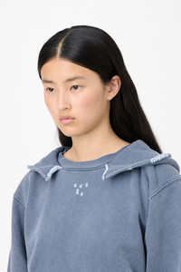 Details · Portuguese fabric · 100% Organic Cotton · Pigment printed · Distressed details · Wide ribbed neckline · Open hood with raw edges · Ribbed hem and cuffs · Distressed thumb openings · Kangaroo pocket · Boxy fit · W4256RB1 Description Our Relic Hoodie in Blue 1000 Points Print. Produced in Portuguese organic cotton fabric, the women's Relic Hoodie has a boxy fit and features pigment printing, distressed details, a wide ribbed neckline, an open hood with raw edges, ribbed hem and cuffs, distressed thumb openings, and a kangaroo pocket. This garment is manufactured using a unique treatment process where the colour is printed onto the material, leaving the reverse side raw. This will give each garment an individual appearance. This technique could result in some color bleed onto lighter garments or surfaces. The garment shall be shaped by its wearer and naturally distress over time to finish the design process.