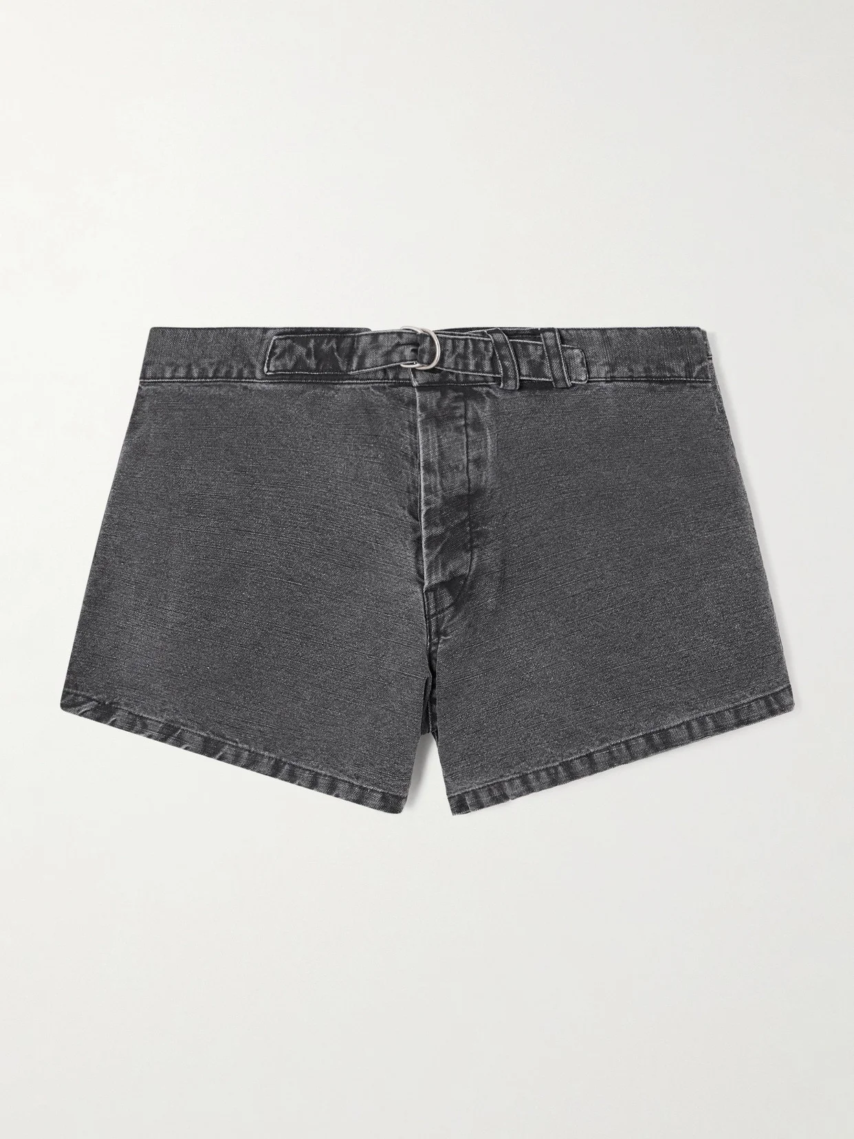 Our Legacy's 'Oyster' shorts are treated with an enzyme wash that creates a faded, vintage look. Cut from black denim, they're threaded with a tonal belt and have a single pocket at the back.